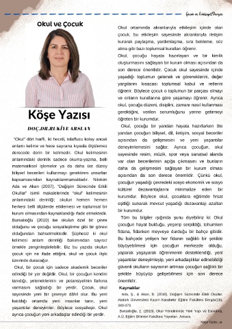 DOÇ.DR.RUKİYE ARSLAN Okul, çocuğu bir yandan hayata hazırlarken öte