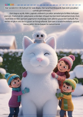 Kar tanelerinin ilki bahçeli bir eve düştü. Her taraf bembeyazdı. İşte evin çocukları