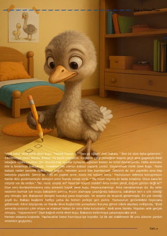 olmuştu. “Yaşasınnnnn!" Diye bağırdı minik deve kuşu. Babasını kaldırmaya çalışmayacaktı artık.