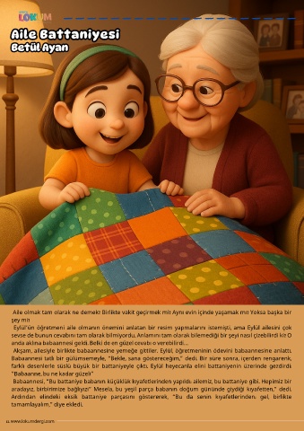 Akşam, ailesiyle birlikte babaannesine yemeğe gittiler. Eylül, öğretmeninin ödevini babaannesine anlattı.