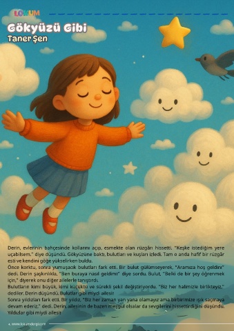 Önce korktu, sonra yumuşacık bulutları fark etti. Bir bulut gülümseyerek, “Aramıza hoş geldin!”