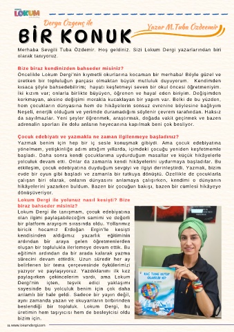 Merhaba Sevgili Tuba Özdemir. Hoş geldiniz. Sizi Lokum Dergi yazarlarından biri
