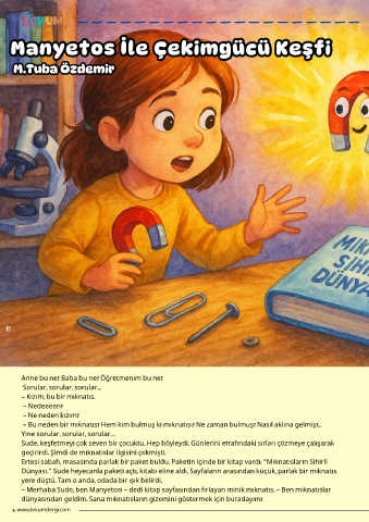— Merhaba Sude, ben Manyetos! — dedi kitap sayfasından fırlayan minik mıknatıs. — Ben mıknatıslar