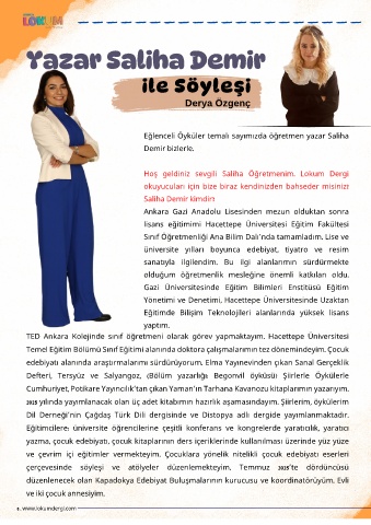 Eğlenceli Öyküler temalı sayımızda öğretmen yazar Saliha