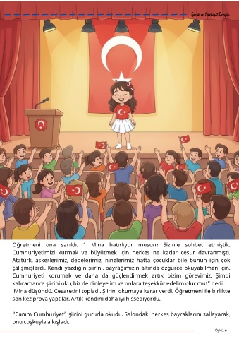 Mina düşündü. Cesaretini topladı. Şiirini okumaya karar verdi. Öğretmeni ile birlikte